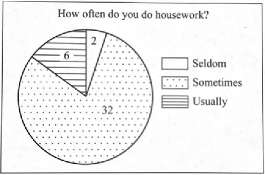 假设你是李华,你们班的英语课正在开展研究性学习,你选择研究同学们做家务的情况,为此你对班里40名同学进行了问卷调查,下图是部分统计结果。请用英语写一篇短文,简要说明图表内容,并对班级同学参与家务劳动提出建议。