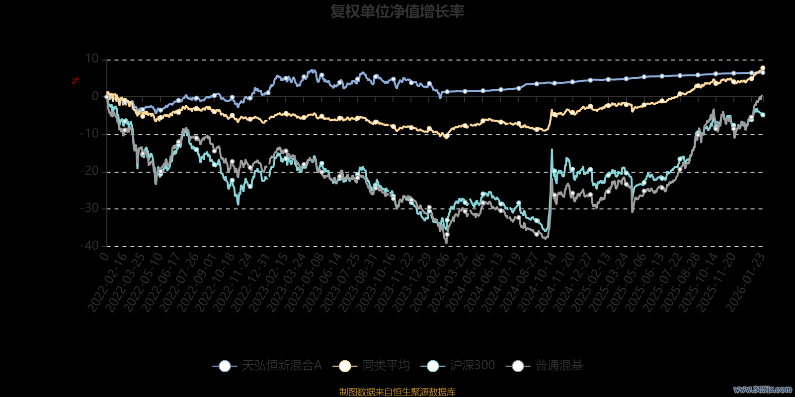截至1月23日,天弘恒新混合A近三个月复权单位净值增长率为0.30%,位于同类可比基金613/683;近半年复权单位净值增长率为0.79%,位于同类可比基金617/683;近一年复权单位净值增长率为1.91%,位于同类可比基金637/683;近三年复权单位净值增长率为0.80%,位于同类可比基金559/617。