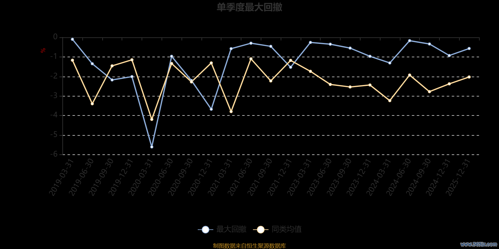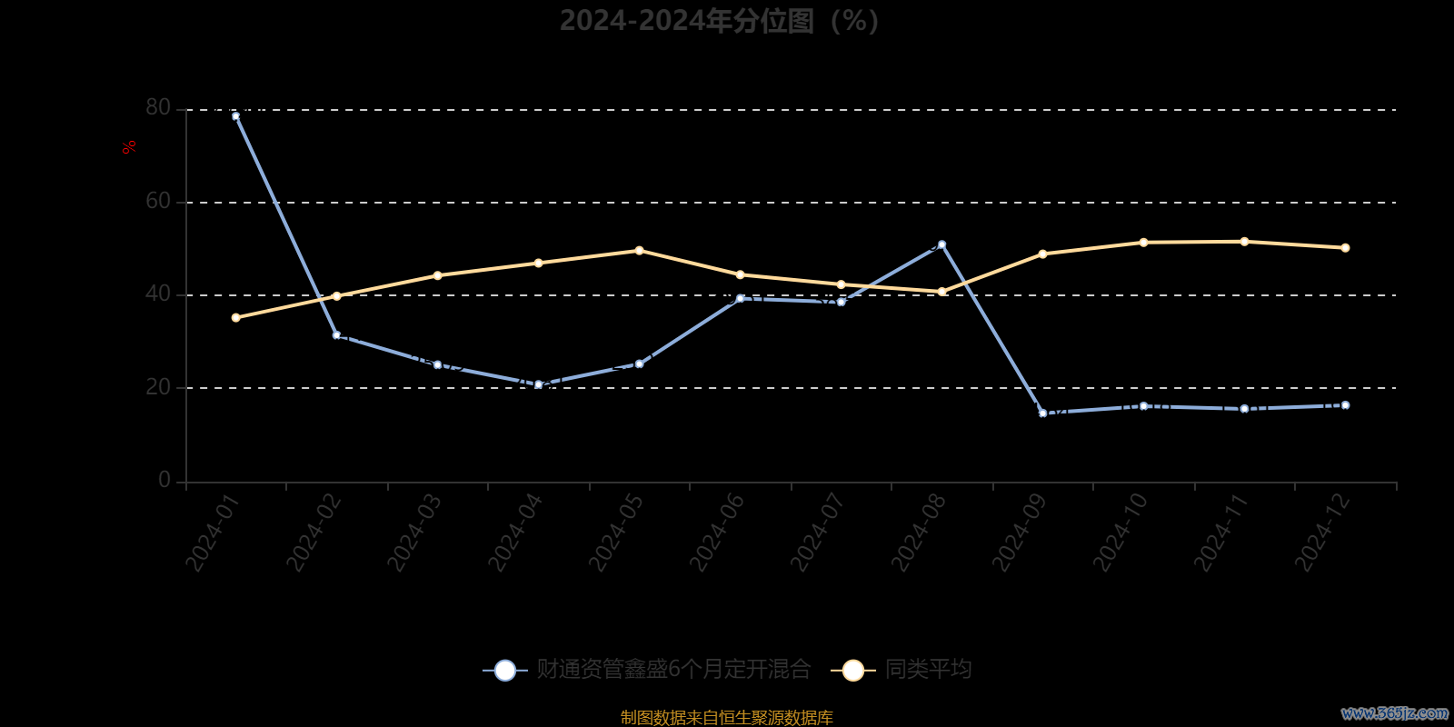 通过所选区间该基金净值增长率分位图,可以观察该基金与同类基金业绩比较情况。图为坐标原点到区间内某时点的净值增长率在同类基金中的分位数。